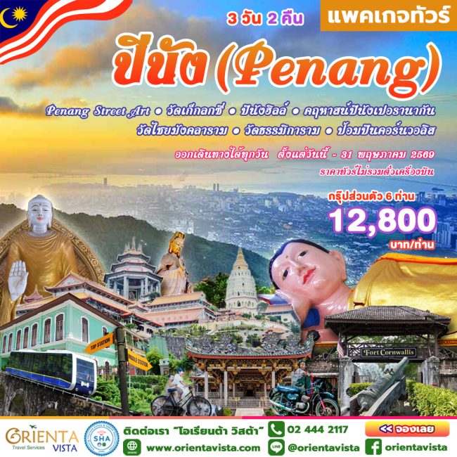 แพคเกจทัวร์ 🚫ไม่รวมตั๋วเครื่องบิน🚫 PENANG (ปีนัง) 3 วัน…