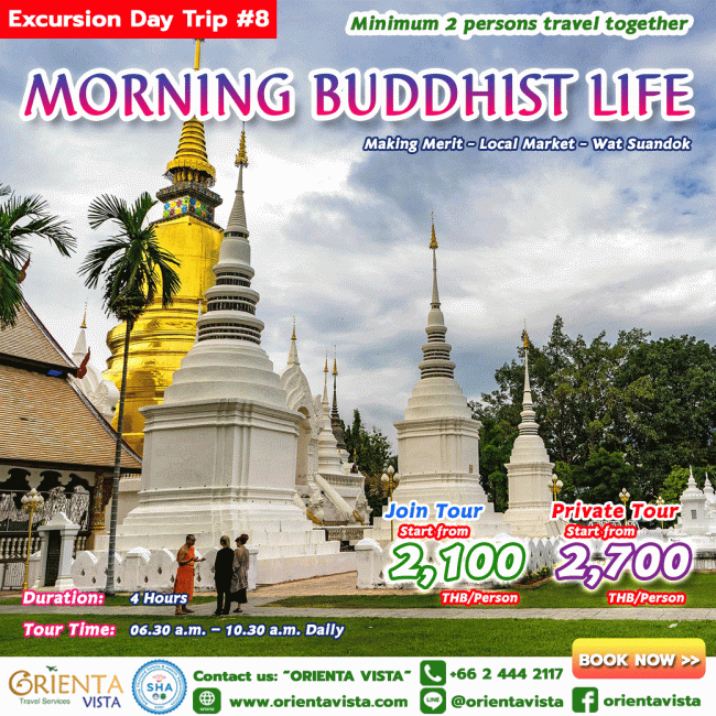 EXCURSION DAY TRIP #8 MORNING BUDDHIST LIFE DOWNLOAD PROGRAM HERE !! EXCURSION DAY TRIP BOOKING FORM For more information, please don’t hesitate to contact us “ORIENTA VISTA” Telephone: +66 2 444 2117E-Mail: orienta.v@gmail.com Line: @orientavistaFacebook: www.facebook.com/orientavista Share to your friends