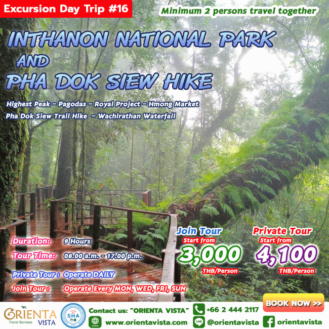 EXCURSION DAY TRIP #16 INTHANON NATIONAL PARK & PHA DOK SIEW TRIAL HIKE DOWNLOAD PROGRAM HERE !! EXCURSION DAY TRIP BOOKING FORM For more information, please don’t hesitate to contact us “ORIENTA VISTA” Telephone: +66 2 444 2117E-Mail: orienta.v@gmail.com Line: @orientavistaFacebook: www.facebook.com/orientavista Share to your friends