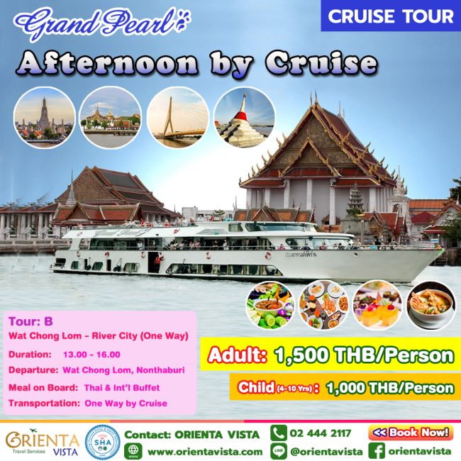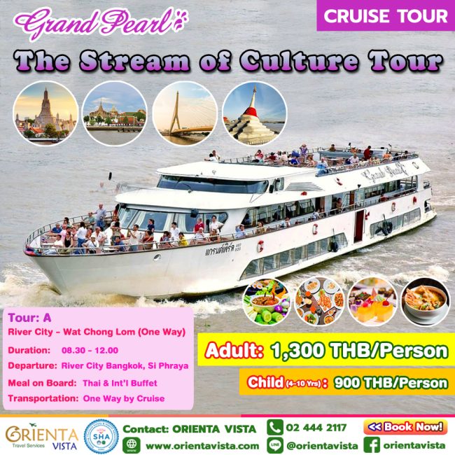 Grand Pearl “Dinner” Cruise Dinner Cruise “GRAND PEARL” Have an international buffet dinner among the views on both sides of the Chao Phraya River with “Grand Pearl”Enjoy with live music & Thai dance show. Cruising with a 2 hour that unforgettable… The Grand Pearl has three decks and can accommodate up to 300 guests.Divided into…